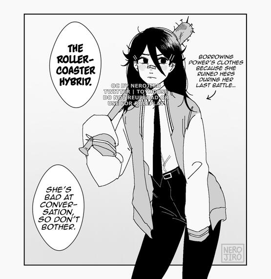 Power is my favorite character! I love her characterization, design, and bond with Denji. Her antics always make me smile and she means a lot to me, which is why I give many of her traits to my favorite OCs. I would be super happy if you associated her with me!